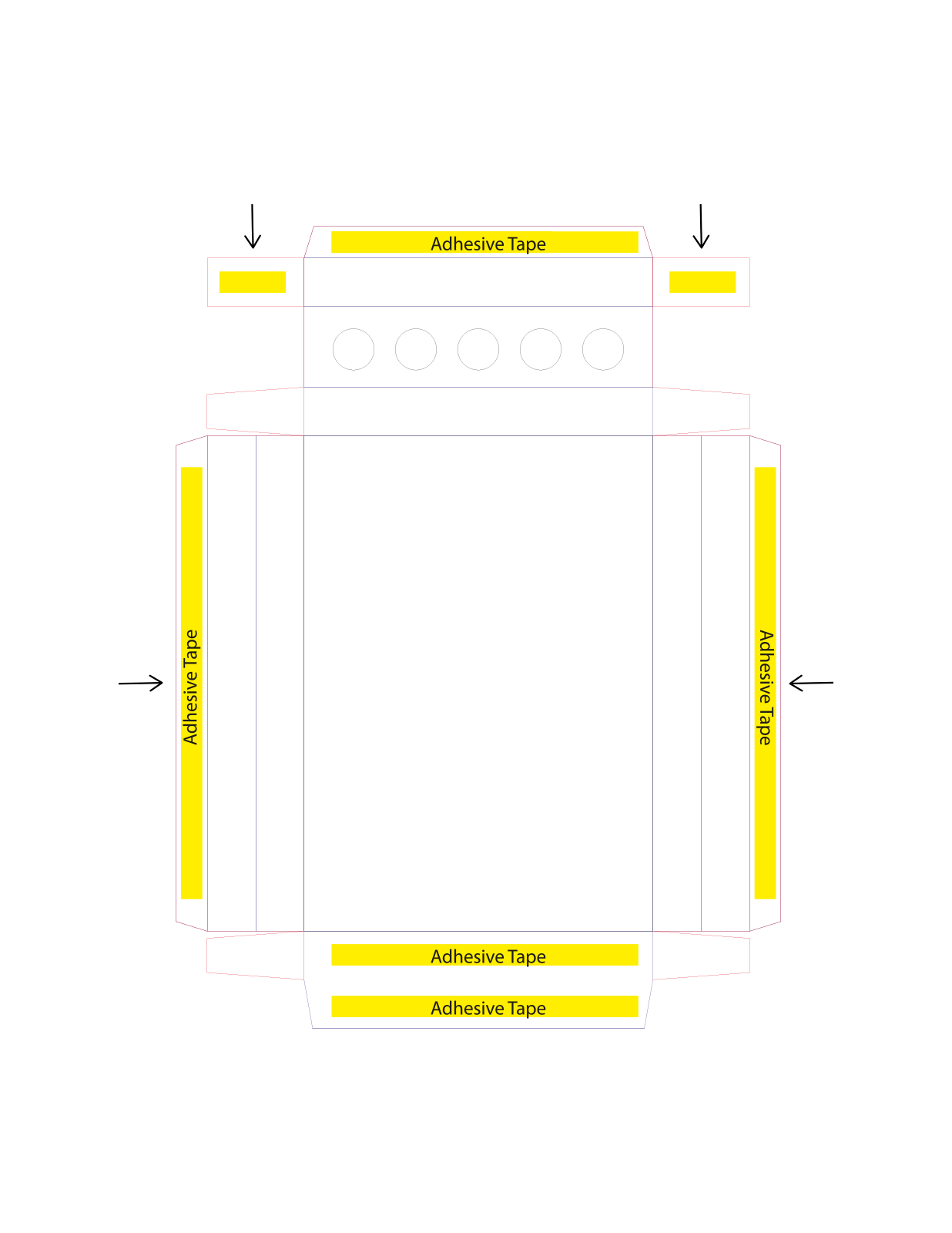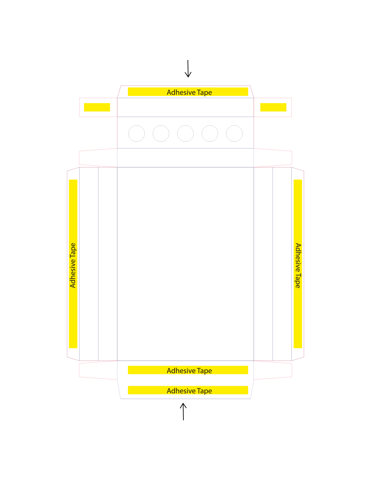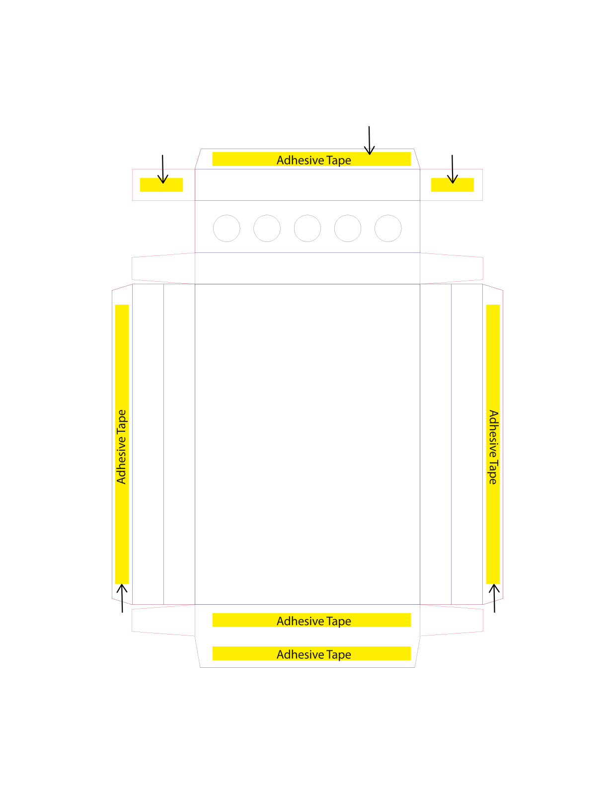 Remove the adhesive tape covers from the marked areas and press the flaps firmly in place to secure the box structure. 🎯