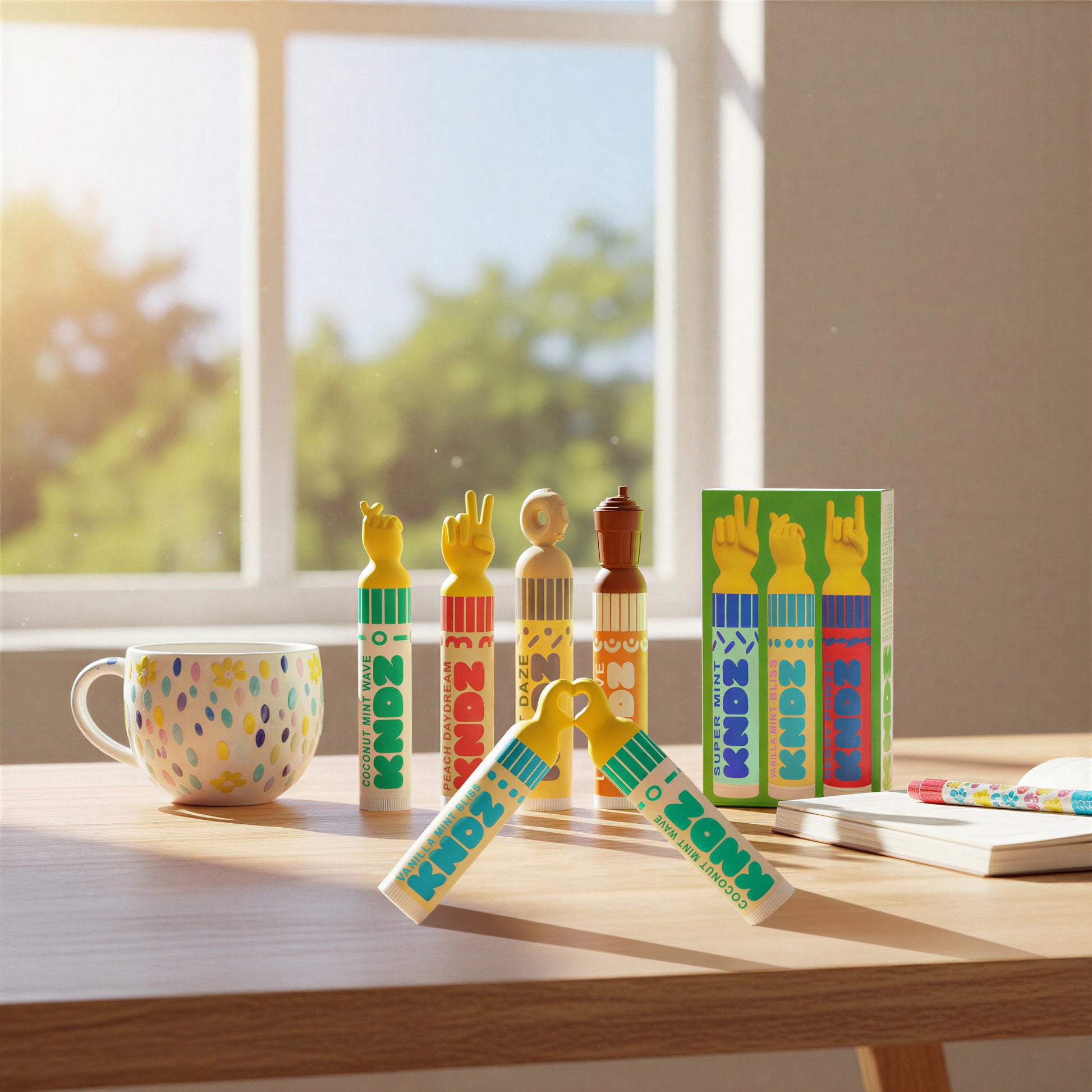😊Get ready to smile! Our vegan lip balms are packed with wholesome ingredients that leave your lips buttery soft, smooth, and oh-so-hydrated. Each one features a delicious blend that uplifts, invigorates, or comforts, and comes with an adorable cap with a positive hand sign – making them the perfect pocket companions to put a smile on your face wherever you go!