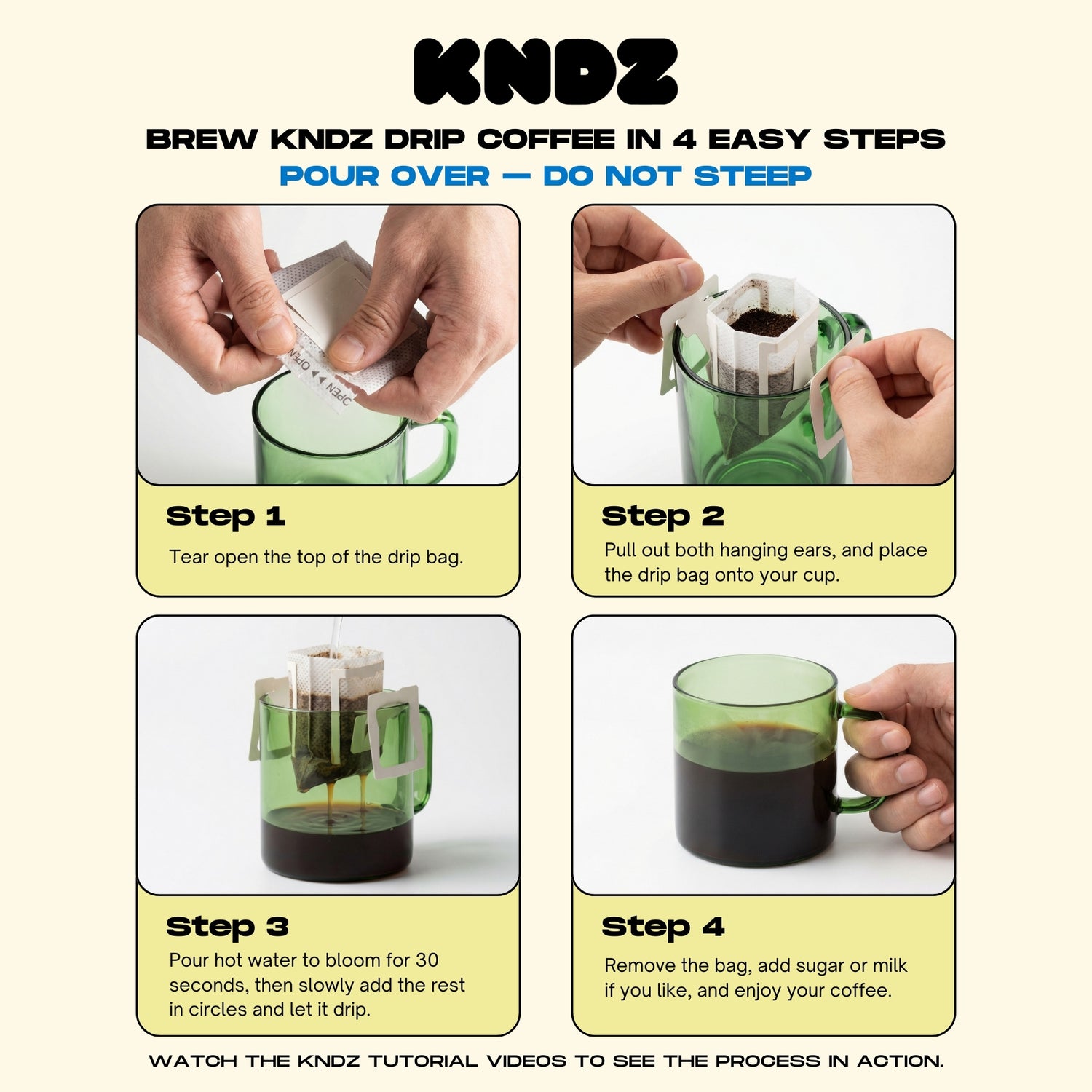 KNDZ coffee is handcrafted in micro-batches using high-quality beans grown in the mountains of Ethiopia and Colombia, where the cooler climate helps develop a rich and balanced taste in every cup. Each batch is freshly roasted by hand, using an artisanal roast style that highlights both our natural infusions and the coffee’s true character.